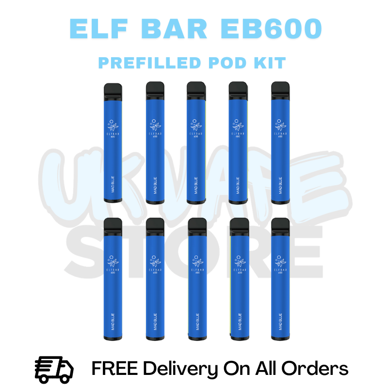 Mad Blue ELF Bar EB600 Prefilled Pod Kit (Box of 10) rich blend of blueberry for a perfectly balanced fruity experience. A refreshing and velvety finish enhances the natural, sun-kissed flavors. A Perfect addition to the ELF Bar 600 Prefilled Pod Kit Range!