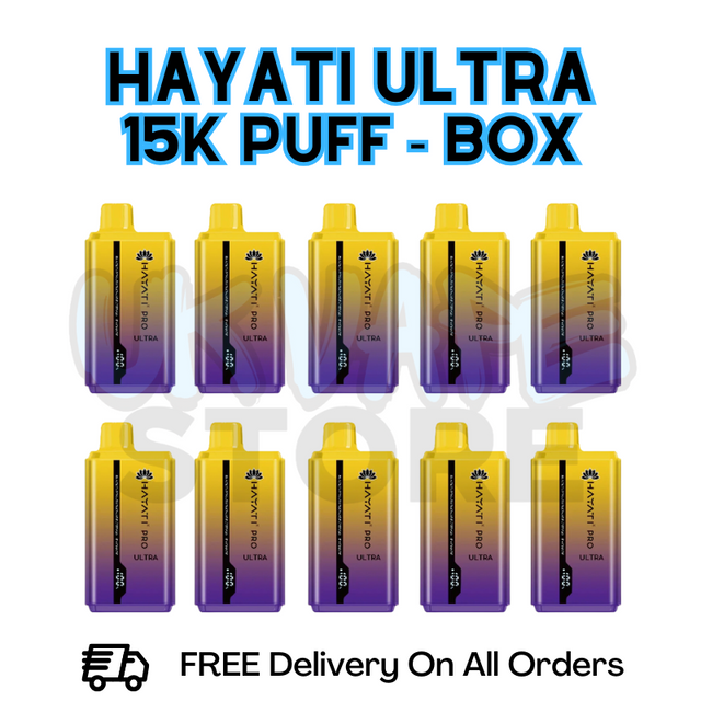 Stock up on your favorite flavor with the Blackcurrant Cotton Candy/ Blue Raspberry Hayati Pro Ultra 15K Puffs Box of 10. Each device offers a massive 15,000 puffs offer a unique and playful flavor experience by blending the rich, tangy taste of blackcurrant. With 10 devices in one box, this pack provides long-lasting convenience and unbeatable value for just £85.99.