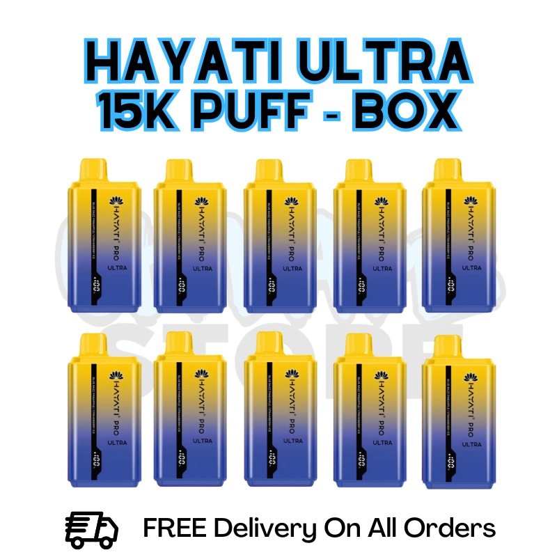 Stock up on your favorite flavor with the Blue Razz Pineapple/ Strawberry Ice Hayati Pro Ultra 15K Puffs Box of 10. Each device offers a massive 15,000 puffs blend combines the tangy sweetness of blue raspberry and strawberry with the tropical and juicy taste of pineapple. With 10 devices in one box, this pack provides long-lasting convenience and unbeatable value for just £85.99.