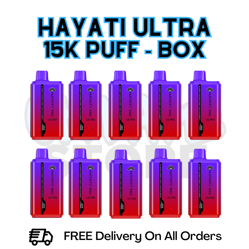 Stock up on your favorite flavor with the Blueberry Raspberry Cherry/ Lemon & Blueberry Hayati Pro Ultra 15K Puffs Box of 10. Each device offers a massive 15,000 puffs offering a bold medley and Lemon & Blueberry offering a bright with a citrusy twist. With 10 devices in one box, this pack provides long-lasting convenience and unbeatable value for just £85.99.