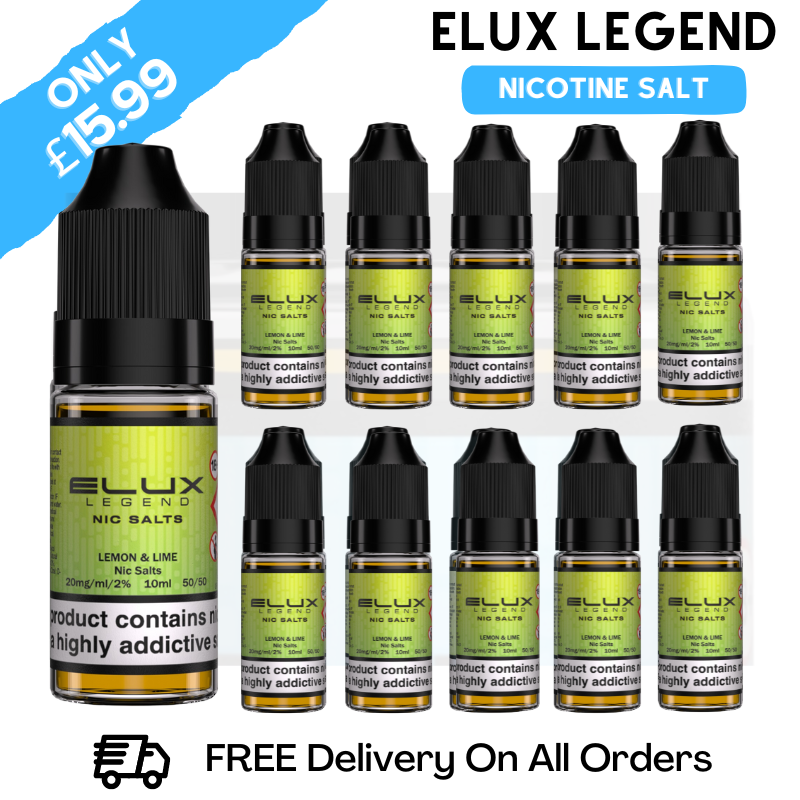 Buy Lemon Lime Elux Legend Nicotine Salt Pack Of 10 tangy and invigorating flavor with a perfect blend of zesty lemon and crisp lime. An amazing additon to the Elux Legend Salt Range.