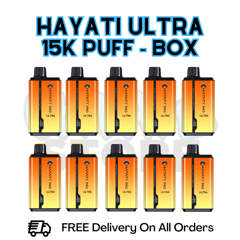 Mango Peach Pineapple Hayati Pro Ultra 15K Puffs Box Of 10 - £85.99 is backordered and will ship as soon as it is back in stock.