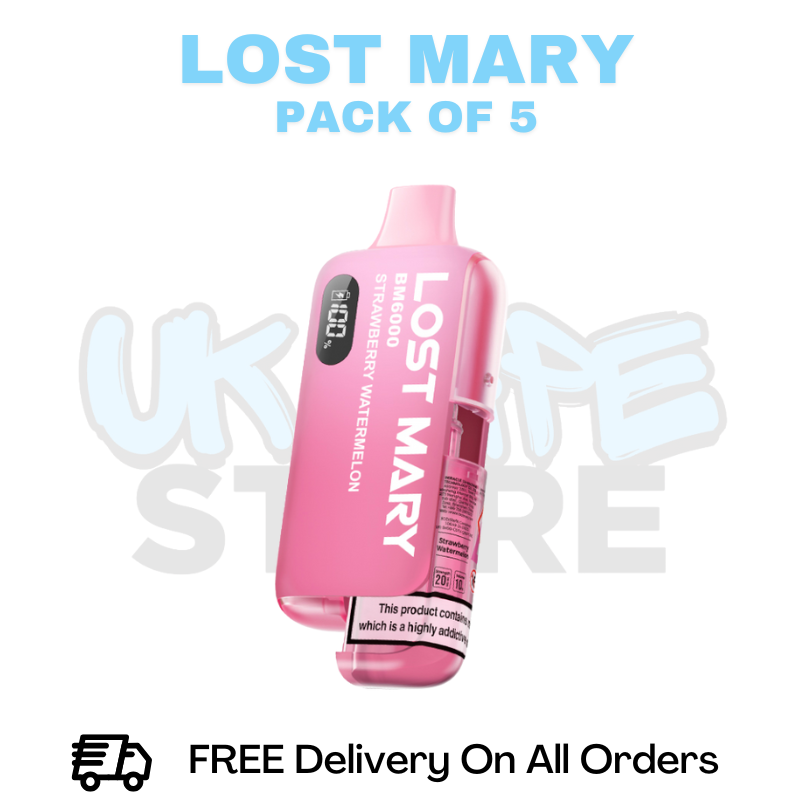 Get ready for a smooth and flavorful vaping experience with the Strawberry Watermelon Lost Mary BM6000 6K Puff (Box of 5), available now at UK Vape Store. Stock up today and enjoy unbeatable value and premium quality—shop now!