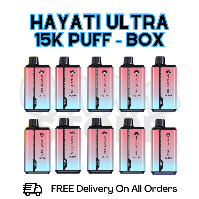 Stock up on your favorite flavor with the Blueberry Cotton Candy/ Raspberry Cotton Candy Hayati Pro Ultra 15K Puffs Box of 10. Each device offers a massive 15,000 puffs with the combination of sweet and slightly tart taste of blueberries with the light and sugary notes of cotton candy. With 10 devices in one box, this pack provides long-lasting convenience and unbeatable value for just £85.99.