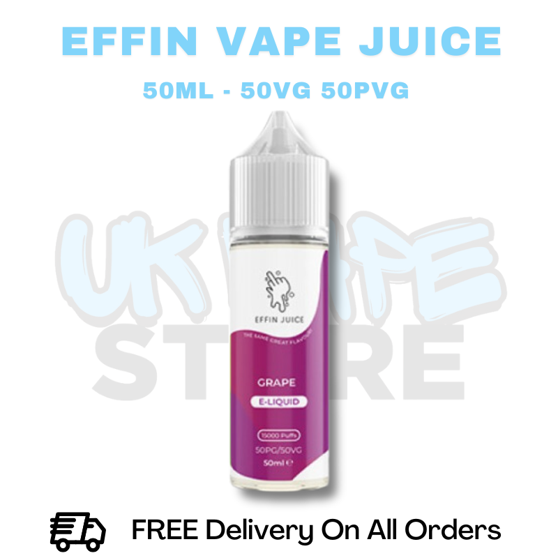 Enjoy pure fruity goodness with Grape Effin Juice Shortfill 50ML, available now at UK Vape Store. Shop now and experience smooth, flavorful vaping!
