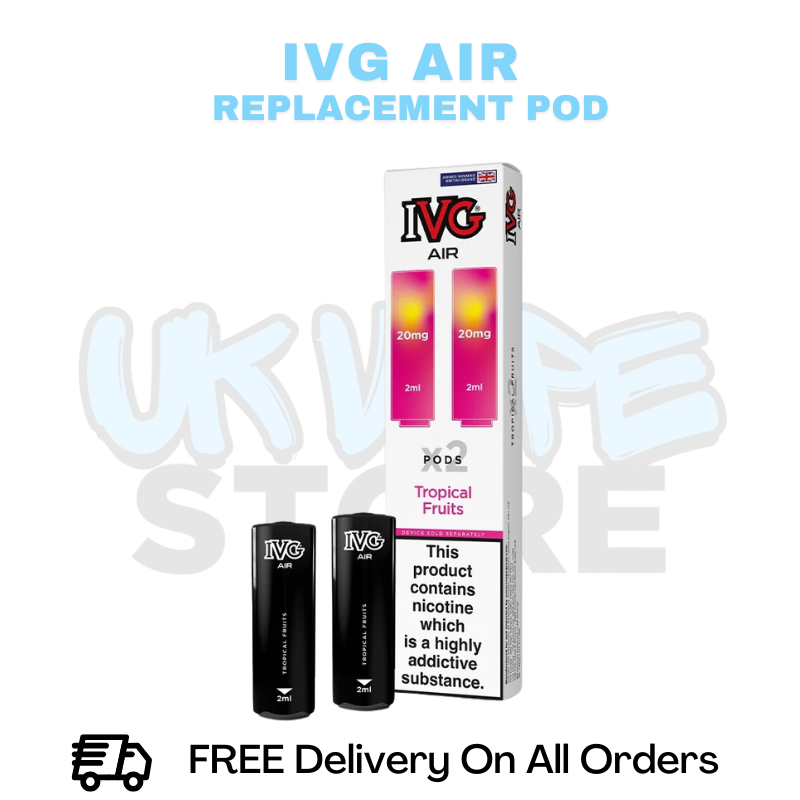 Designed for use with the IVG Air Pod Kit, this prefilled pod ensures a hassle-free vaping experience, combining rich flavor with smooth vapor. Perfect for vapers offering a unique profile with tropical fruits for the fruity finish, this pod is available at an unbeatable price of just £3.49.